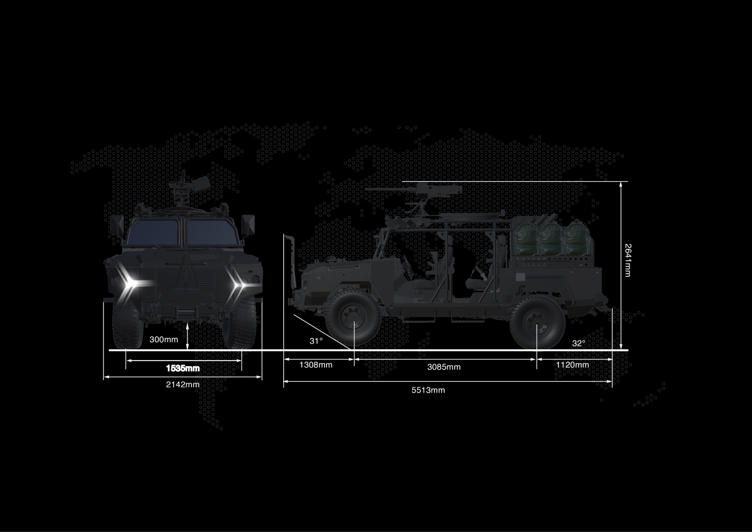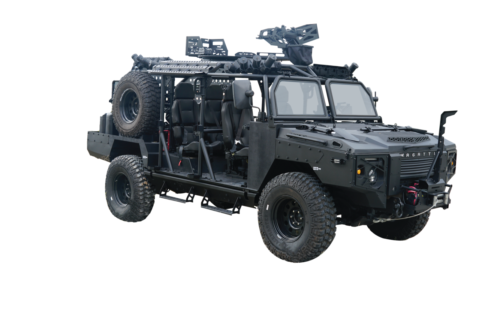 Magatti is a light strike vehicle that can carry up to 12 crews including drivers depending on the desired seat layout and combat load. It can mount 2 units of GPMG at the front and rear (each). The weapon mount can be equipped with HMG and AGL, making it a reliable vehicle for penetrating enemy lines. It is also equipped with 16 smoke grenade launchers.